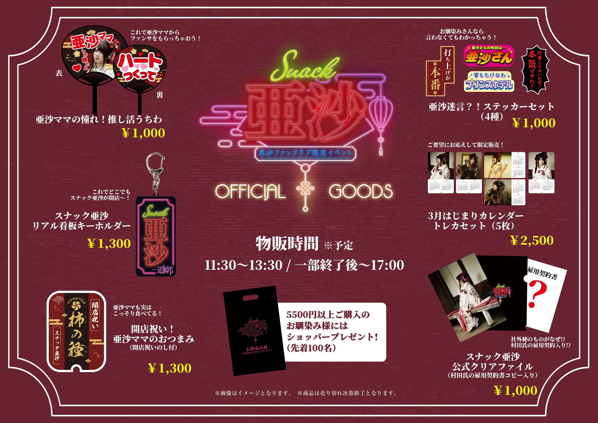 スナック亜沙の開店を記念しまして、限定グッズを当日会場にて販売させて頂きます!